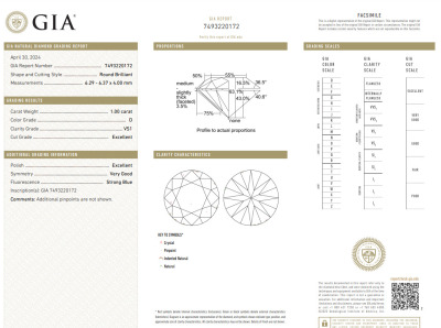 Diamond solitaire ring with round brilliant cut Natural Diamond of 1.00ct (with GIA Report graded as D VS1 #7493220172). Platinum 950. Ring size K1/4. Band width 3.3mm - 2.7mm. Weight 7.4g. (New)