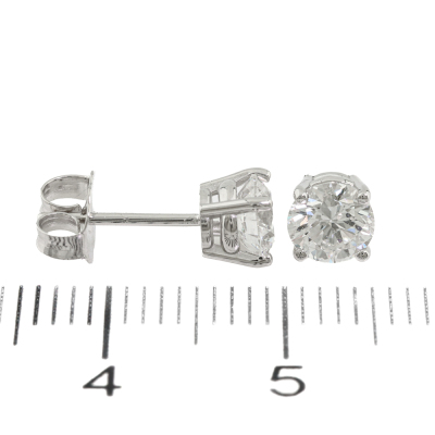 Diamond stud earrings with 2 round brilliant cut Natural Diamonds totalling 1.00ct (with GIA Diamond Dossier Reports graded as D SI1 #1537911212 & E SI1 #2546265433). 18ct white gold. Weight: 1.1g.