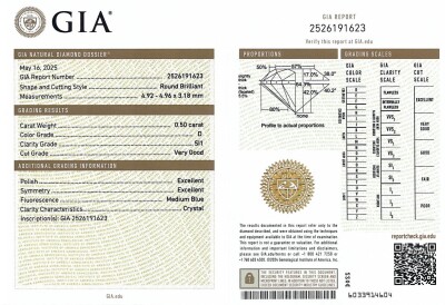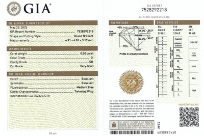 Diamond stud earrings with 2 round brilliant cut Natural Diamonds totalling 1.00ct (with GIA Summary Reports graded as D SI1 #7528292218