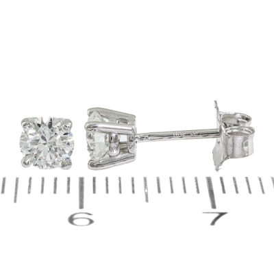 Diamond stud earrings with 2 round brilliant cut Natural Diamonds totalling 1.00ct (with GIA summary Reports graded as D VS1# 7506403188 & D VS2 #6522691839). 18ct white gold. Weight: 1.0g. (New)