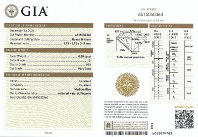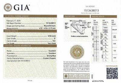 Diamond stud earrings with 2 round brilliant cut Natural Diamonds totalling 1.00ct (with GIA summary Reports graded as D VS1# 1513438013, 6515050360). 18ct yellow gold. Weight: 1.0g. (New)