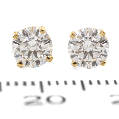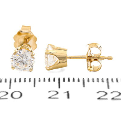 Diamond stud earrings with 2 round brilliant cut Natural Diamonds totalling 1.00ct (with GIA summary Reports graded as D VS1#1519662933, 2231525928). 18ct yellow gold. Weight: 1.3g. (New)