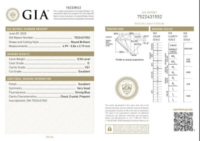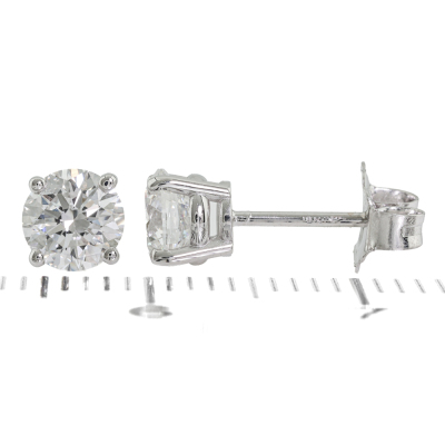Diamond stud earrings with 2 round brilliant cut Natural Diamonds totalling 1.00ct (with GIA summary Reports graded as D VS1# 1537100410, 7522431552). 18ct white gold. Weight: 1.1g. (New)
