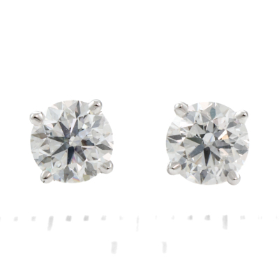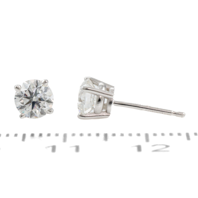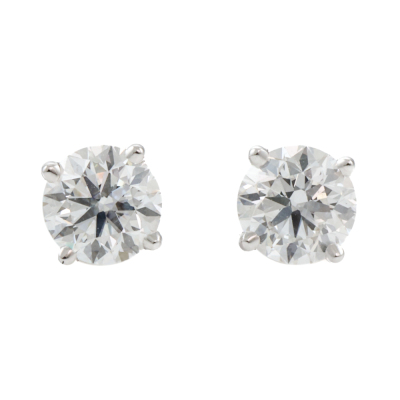 Diamond stud earrings with 2 round brilliant cut Natural Diamonds totalling 1.00ct (with GIA Dossier Reports graded as D VS2 #7522267216, 2527076013). 18ct white gold. Weight: 1.2g. (New)
