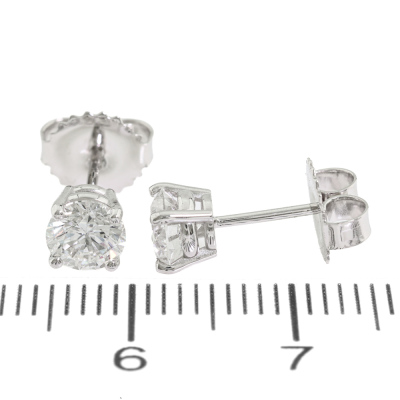 Diamond stud earrings with 2 round brilliant cut Natural Diamonds totalling 1.00ct (with GIA Diamond Dossier Reports graded as D VVS2# 6525553944 & E VVS2 #1517959994). 18ct white gold