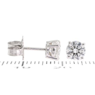 Diamond stud earring with round brilliant cut Natural Diamonds totalling 1.00ct (with GIA Dossier Reports graded as E Internally Flawless #7511499681, 2526858305). 18ct white gold. Weight: 1.2g. (New)