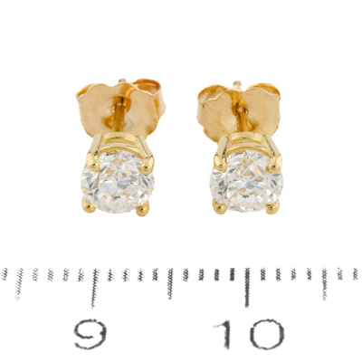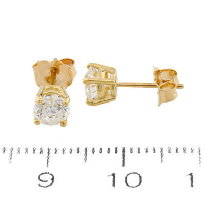 Diamond stud earring with round brilliant cut Natural Diamonds totalling 1.00ct (with GIA Dossier Reports graded as E SI1 #2528922179, 6522144040). 18ct yellow gold. Weight: 1.0g. (New)