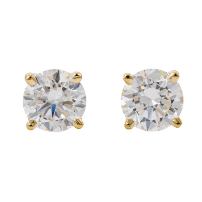 Diamond stud earrings with 2 round brilliant cut Natural Diamonds totalling 1.00ct (with GIA summary Reports graded as E VVS1# 7521439104 & E VVS2# 2526709698). 18ct yellow gold. Weight: 1.3g.