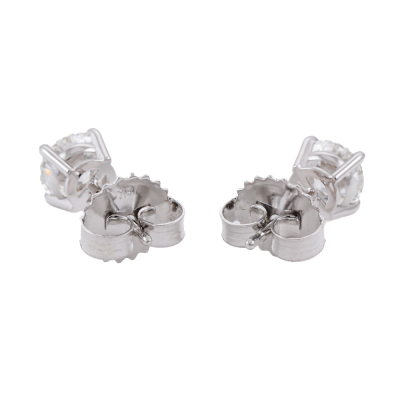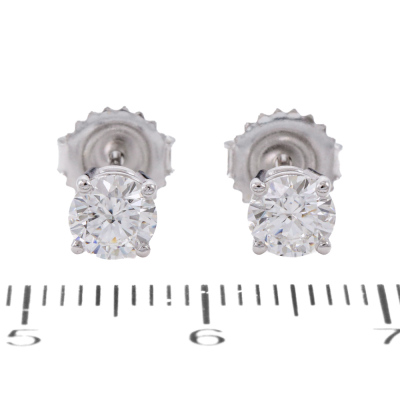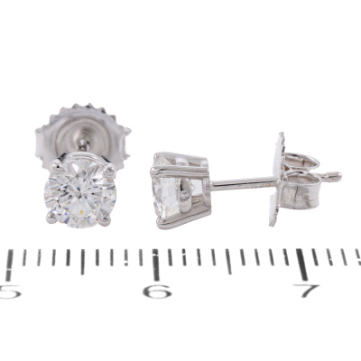 Diamond stud earrings with 2 round brilliant cut Natural Diamonds totalling 1.00ct (with GIA Diamond Dossier Reports graded as E VVS1 #6522668900, 1528718167). 18ct white gold. Weight: 1.2g. (New)