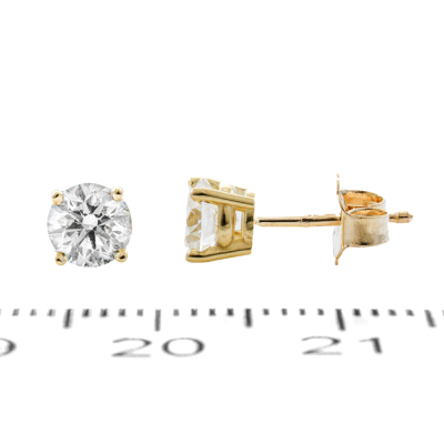 Diamond stud earrings with 2 round brilliant cut Natural Diamonds totalling 1.00ct (with GIA Dossier Reports graded as G VS2 #6531081274 & G SI1 #6521858359). 18ct yellow gold. Weight: 1.2g. (New)