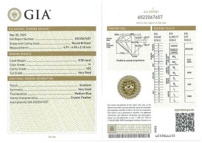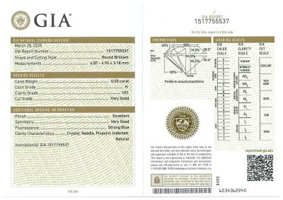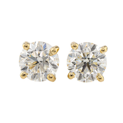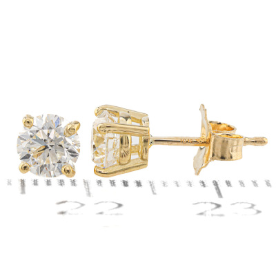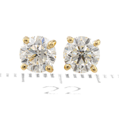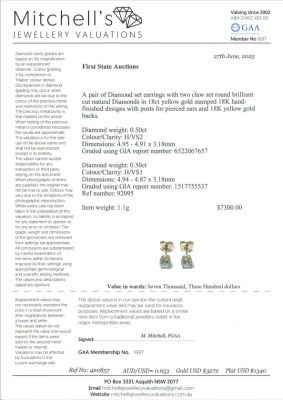 Diamond stud earrings with 2 round brilliant cut Natural Diamonds totalling 1.00ct (with GIA summary Reports graded as H VS1 #1517755537 & H VS2 #6522067657). 18ct yellow gold. Weight: 1.1g. With Valuation Certificate #420857. (New)