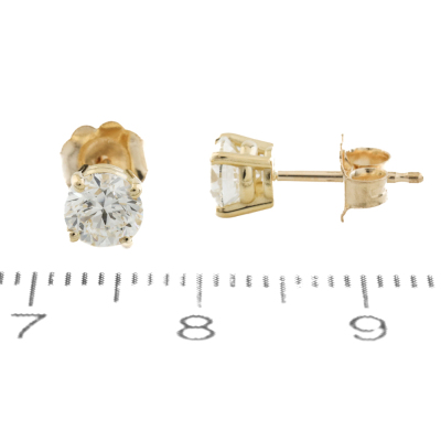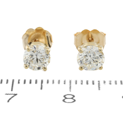 Diamond stud earrings with 2 round brilliant cut Natural Diamonds totalling 1.00ct (with GIA Dossier Reports graded as J VVS1 #3525085991, 2526147586). 18ct yellow gold. Weight: 1.1g. (New)