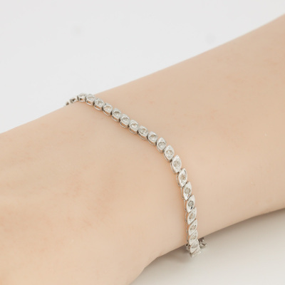 Diamond tennis bracelet with 48 round Natural Diamonds totalling 1.00ct (Estimated grading: HIJ P1-P3). 18ct white gold. Length: 17.5cm. Weight: 6.5g. (Pre-owned)