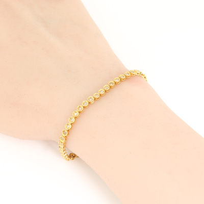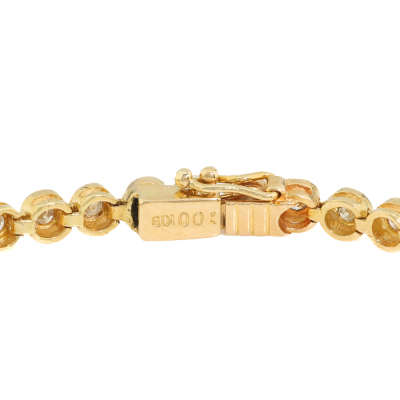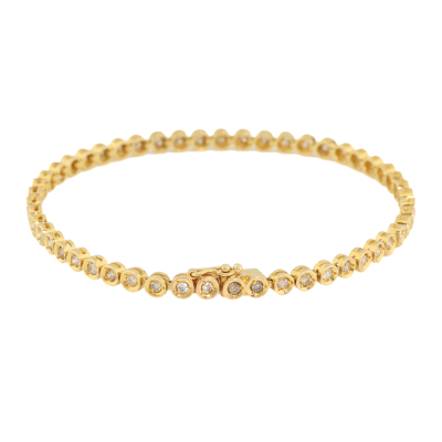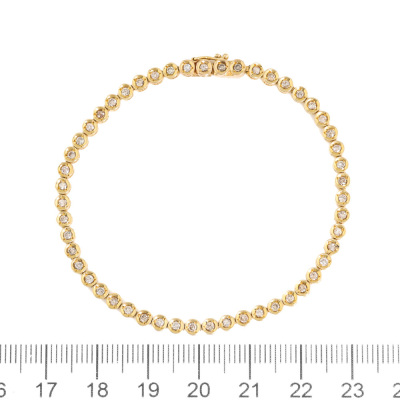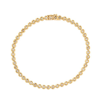 Diamond tennis bracelet with round Natural Diamonds totalling 1.00ct (Estimated grading: Champagne SI-P1). 18ct yellow gold. Length: 17cm. Weight: 7.2g.