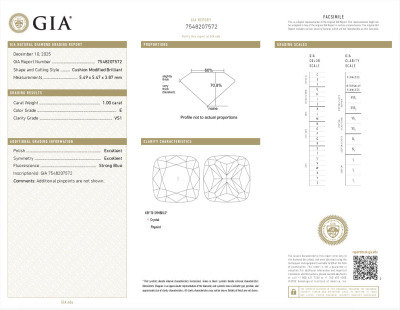 A loose cushion cut Natural Diamond of 1.00ct (with GIA Report graded as E VS1 #7548207572