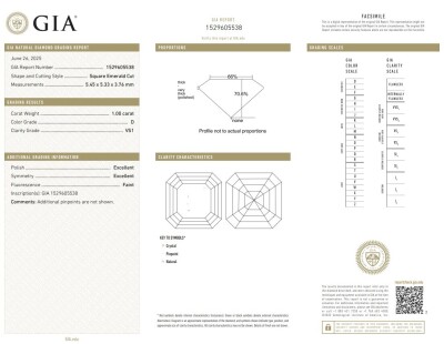 A loose square emerald cut Natural Diamond of 1.00ct (with GIA report graded as D VS1#1529605538 ). (New)