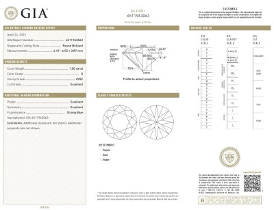A loose round brilliant cut Natural Diamond of 1.00ct (with GIA Diamond Report graded as D VVS2 #6511963063)