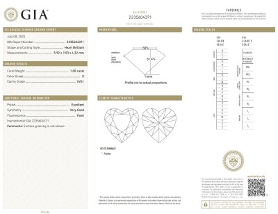 A loose heart shaped Natural Diamond of 1.00ct (with GIA report graded as E VVS1#2235604371