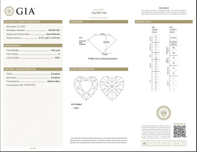 A loose heart shape Natural Diamond of 1.00ct (with GIA Report graded as E VVS1#1547091781).