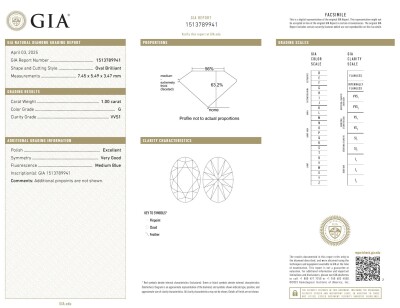 A loose oval shape Natural Diamond of 1.00ct (with GIA report graded as G VVS1# 1513789941). (New)