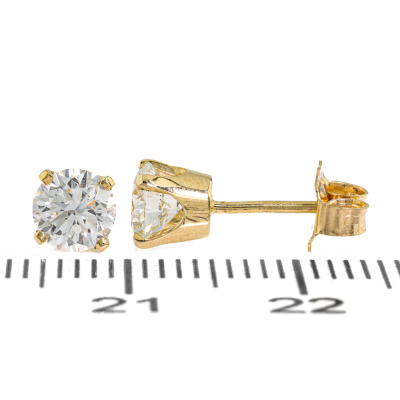 Diamond stud earrings with 2 round brilliant cut Natural Diamonds totalling 1.00ct (with GIA Summary Reports graded as E VS1 #2528146534, 6522919816) 18ct yellow gold. Weight: 1.4g. (New)