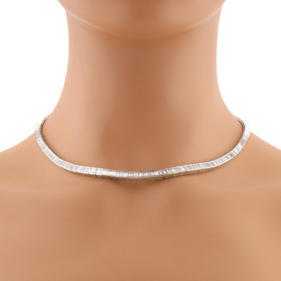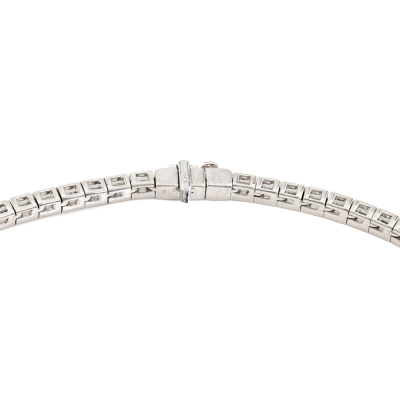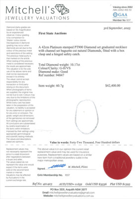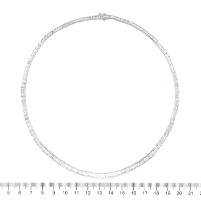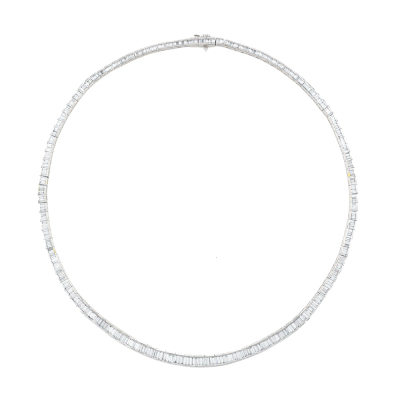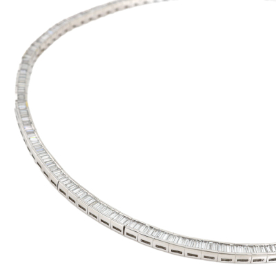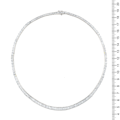 Diamond necklace with baguette cut Natural Diamond totalling 10.17ct (Estimated grading: G-H VS). Platinum - 900. Inner circumference: 42cm. Weight: 60.7g. With Certificate #421423. (Pre-owned)
