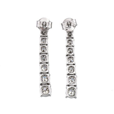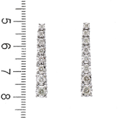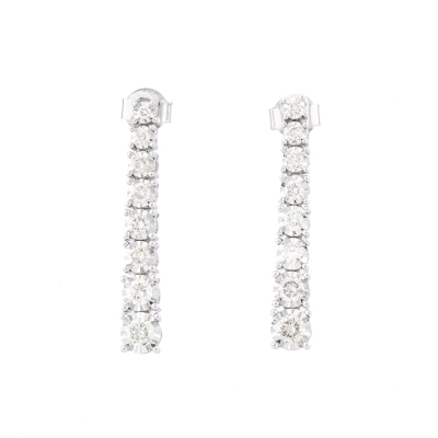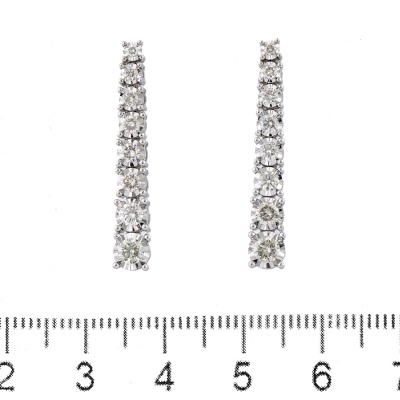 Diamond drop earrings with 16 round Diamonds totalling 1.01ct (Estimated grading: I-J SI). 14ct white gold. Length: 2.8cm. Weight: 4.4g. (New)