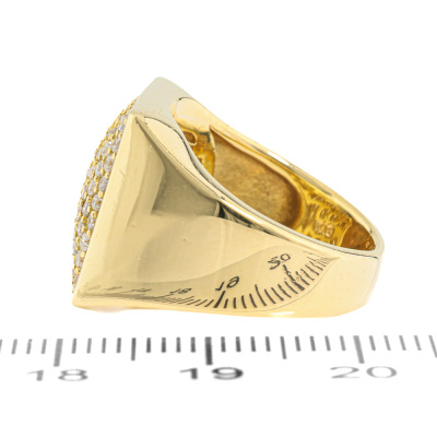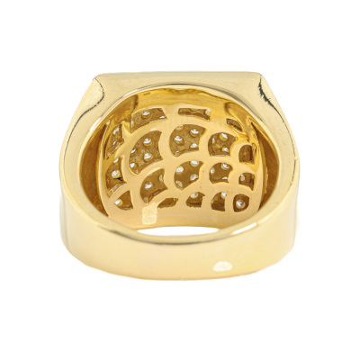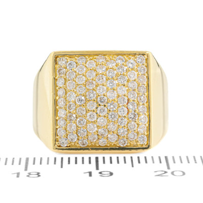 Mens ring with round Natural Diamonds totalling 1.01ct (Estimated grading: G SI). 18ct yellow gold. Ring size: K1/2. Band width: 4mm - 6.5mm. Weight: 13.3g. (Pre-owned)