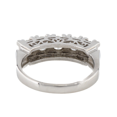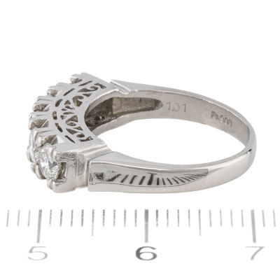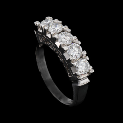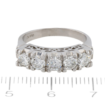 Diamond ring with 5 round Natural Diamonds totalling 1.01ct (Estimated grading: G-H SI). Platinum - 900. Ring size J 3/4. Band width: 2.3mm - 3.0mm. Weight: 6.2g.