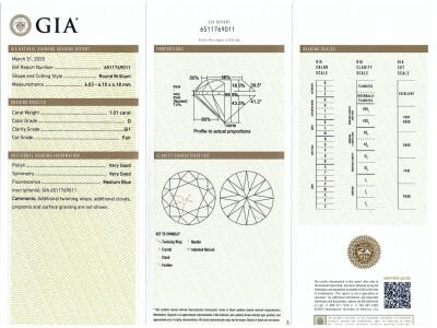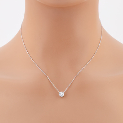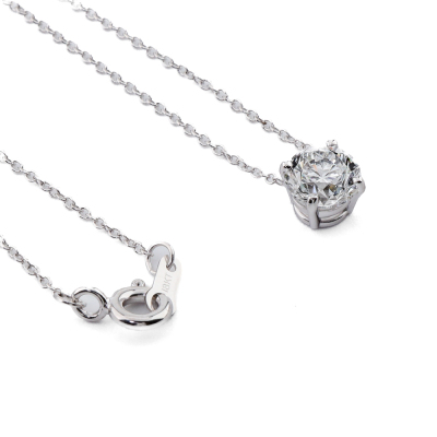 Diamond solitaire pendant with a round brilliant cut Natural Diamond of 1.01ct (with GIA Report graded as D SI1 #6511769011). 18ct white gold with 18ct white gold attached chain. Length: 41cm. Weight 1.6g (New)