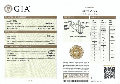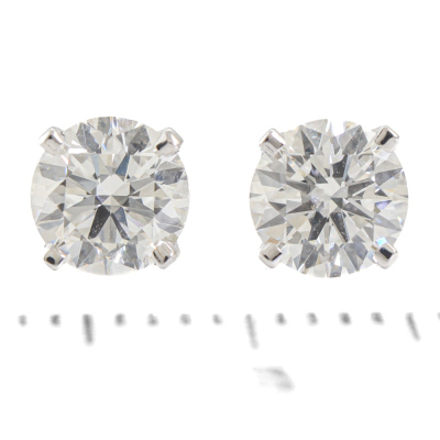 Diamond stud earrings with 2 round brilliant cut Natural Diamonds totalling 1.01ct (with GIA Dossier Reports graded as G VVS1 #3495596324, 1513086027). 18ct white gold. Weight: 1.3g. (New)