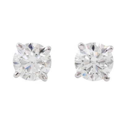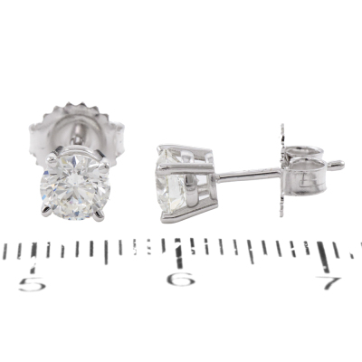 Diamond stud earrings with 2 round brilliant cut Natural Diamonds totalling 1.01ct (with GIA Summary Reports graded as G VVS1 #7516657872, 5536424383). 18ct white gold. Weight: 1.2g. (New)