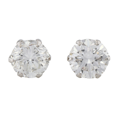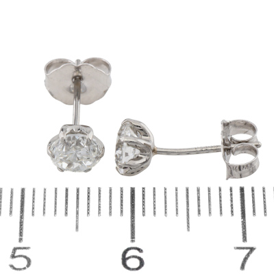 Diamond stud earrings with 2 round brilliant cut Natural Diamonds totalling 1.01ct (Estimated grading: G SI). Platinum-900 with 18ct white gold backs. Weight: 0.7g