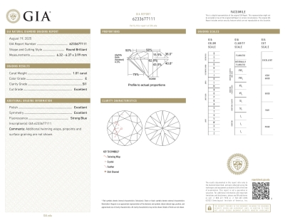 A loose round brilliant cut natural Diamond of 1.01ct (with GIA report graded as E SI1 #6233677111