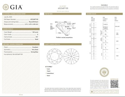 A loose round brilliant cut Natural Diamond of 1.01ct (with GIA Report graded as G VS1 #6522687100