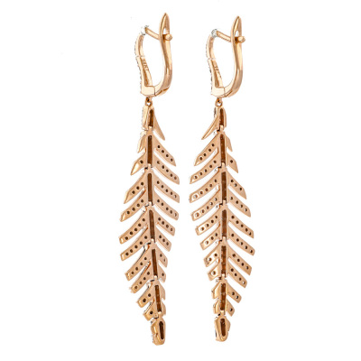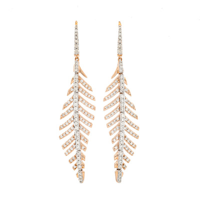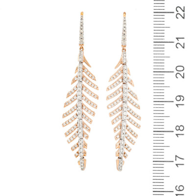 Diamond leaf design earrings with 182 round Natural Diamonds totalling 1.02ct (Estimated grading: H-I SI). 14ct rose gold with white rhodium plating. Length: 5cm Weight: 7.1g. (New).
