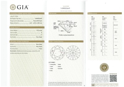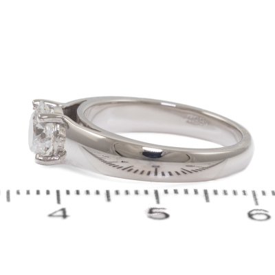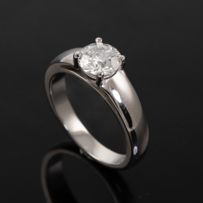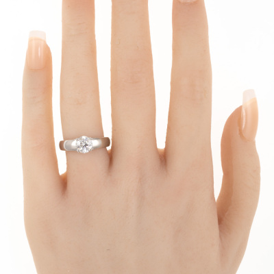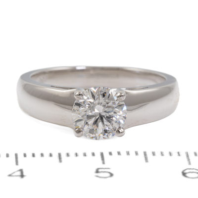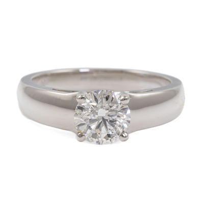 Diamond Solitaire ring with round brilliant cut Natural Diamond of 1.02ct (with GIA report graded as E P1 #1498553649) Platinum 950. Ring size L. Band width 2.8.mm - 4.5mm. Weight 8.2g (New)