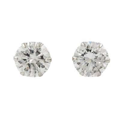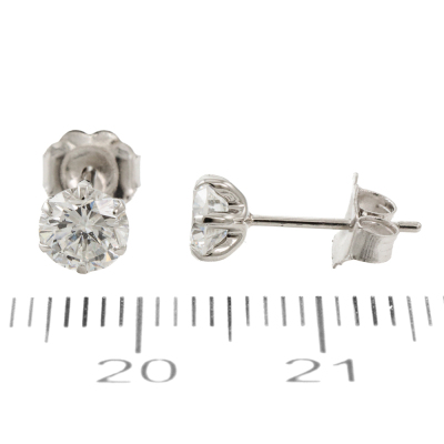 Diamond stud earrings with 2 round brilliant cut Natural Diamonds totalling 1.02ct (Estimated grading: H SI). Platinum-900 with 18ct white gold backs. Weight: 0.8g