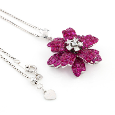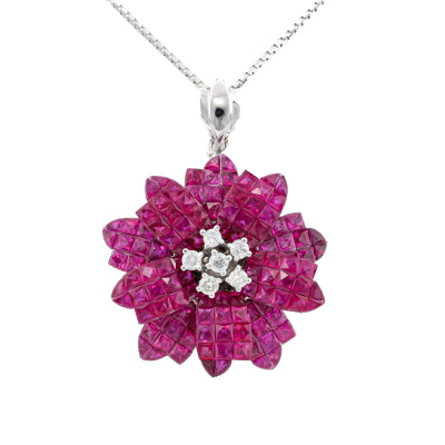 10.35ct Ruby & Diamond Flower Pendant