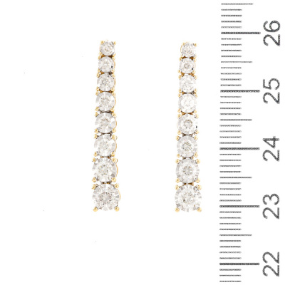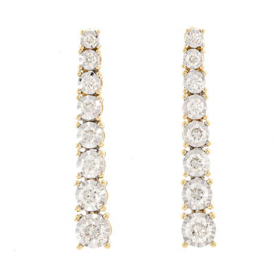 Diamond drop earrings with graduated round Diamonds totalling 1.03ct (Estimated grading: H-I VS-SI). 14ct yellow gold. Length: 2.9cm. Weight: 4.4g. (New)