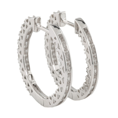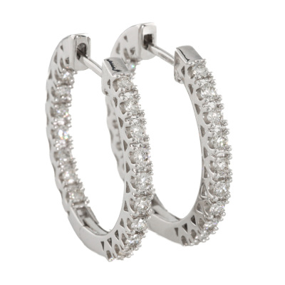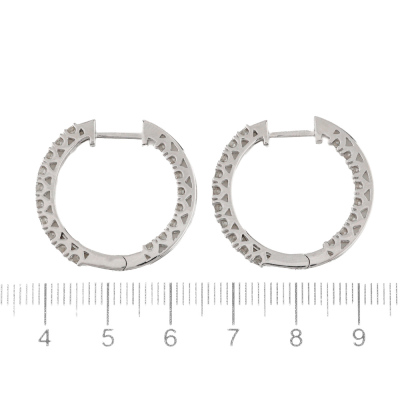 Diamond inside out hoop earrings with 36 round Natural Diamonds totalling 1.03ct (Estimated grading: H-I SI). Back of the hoop has the Diamonds set inside the hoop. 14ct white gold. Hoop diameter: 2.6cm. Hoop width: 2.4mm. Weight: 6.5g. (New).