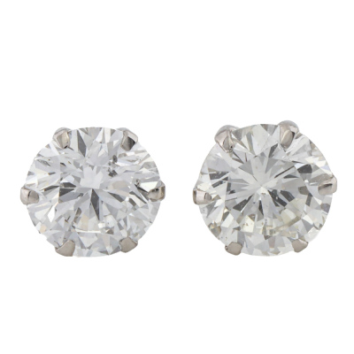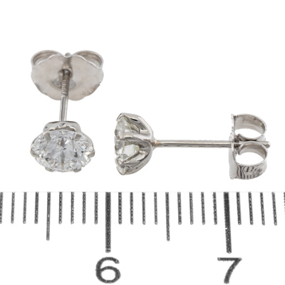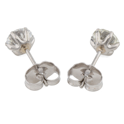 Diamond stud earrings with 2 round brilliant cut Natural Diamonds totalling 1.03ct (Estimated grading: G-H SI). Platinum-900 with 18ct white gold backs. Weight: 0.7g