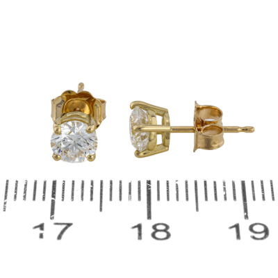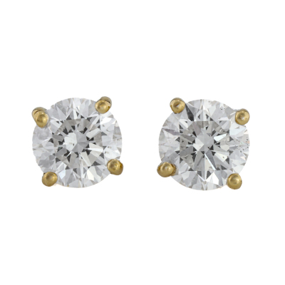 Diamond stud earrings with 2 round brilliant cut Natural Diamonds totalling 1.03ct (with GIA summary Reports graded as D SI2# 6521894483 & E SI2# 7526342569). 18ct yellow gold. Weight: 1.0g.