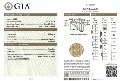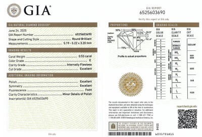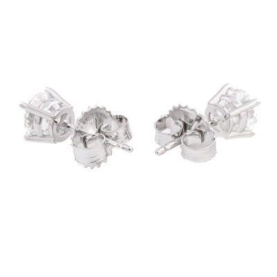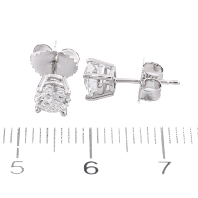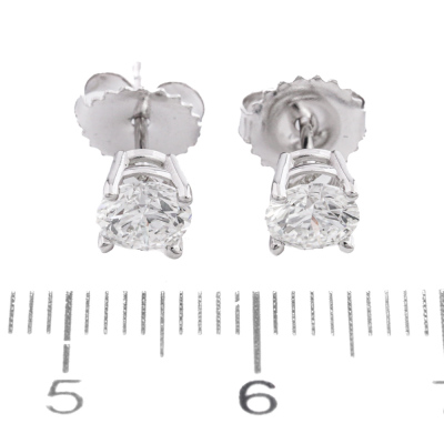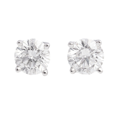 Diamond stud earrings with 2 round brilliant cut Natural Diamonds totalling 1.03ct (with GIA Dossier Reports graded as E Internally Flawless #5523526736, 6525603690). 18ct white gold. Weight: 1.2g. (New)