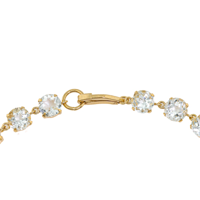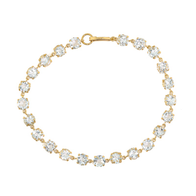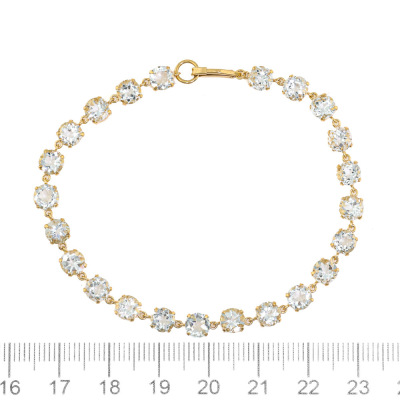 Aquamarine bracelet with 23 round Natural Aquamarines totalling 10.45ct (Note - colour of Aquamarines are faint blue to near colourless). 18ct yellow gold. Width: 5mm. Length: 18cm. Weight: 5.3g. (Pre-owned)