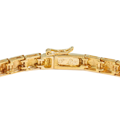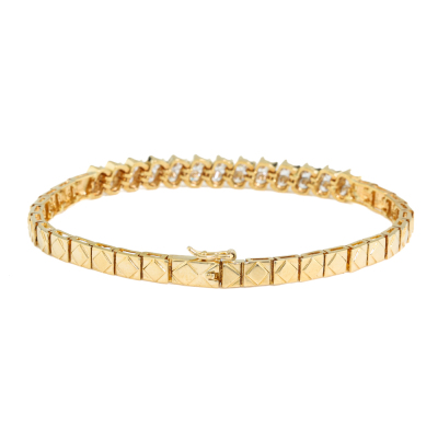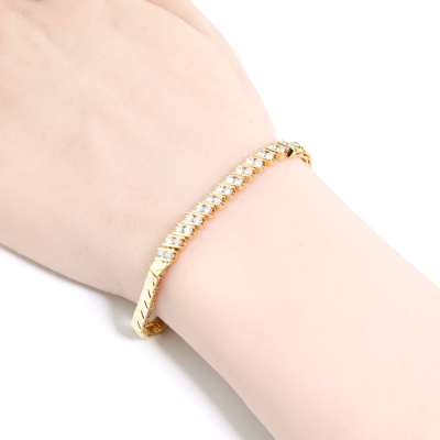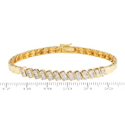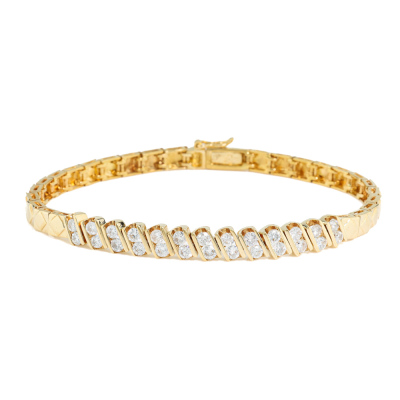 Diamond bracelet with 26 round Natural Diamonds totalling approximately 1.04ct (Estimated grading H-I VS). 18ct yellow gold. Length: 16cm. Weight: 11.5g. (Pre-owned)