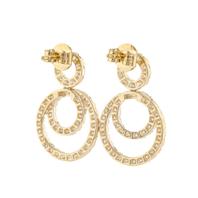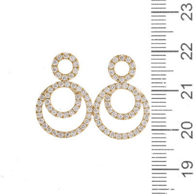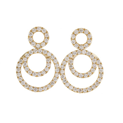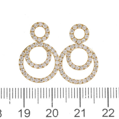 Diamond dress earrings with 90 round Natural Diamonds totalling 1.04ct (Estimated grading: H-SI). 14ct yellow gold. Length: 2.1cm. Weight: 2.9g. (New)