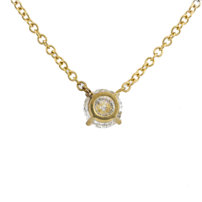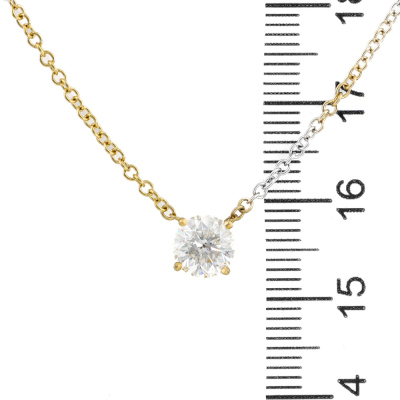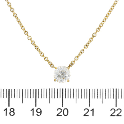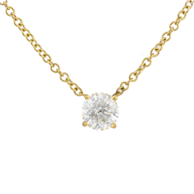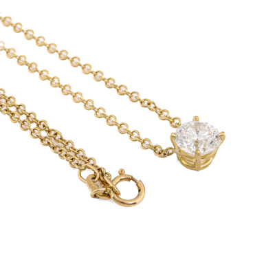 Diamond solitaire pendant with round brilliant cut Natural Diamond of 1.04ct (Estimated grading: G-H P1-P2). 18ct yellow gold with 40.5cm chain. Weight: 3.0g (New)