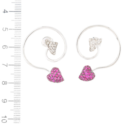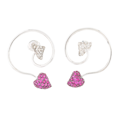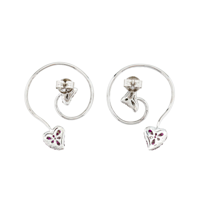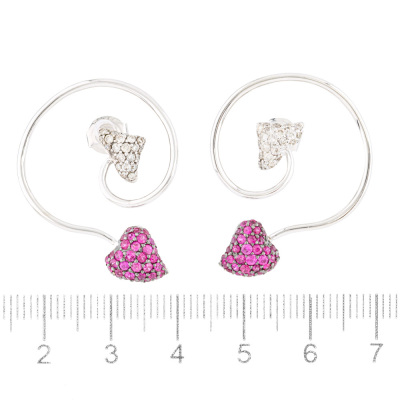 Ruby and Diamond earrings with round Natural Rubies totalling 1.04ct and round Natural Diamonds totalling 0.50ct (Estimated grading: J SI). 18ct white gold with black rhodium plating and 14ct white gold backs. Weight: 6.9g. (Pre-owned)