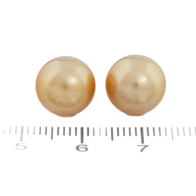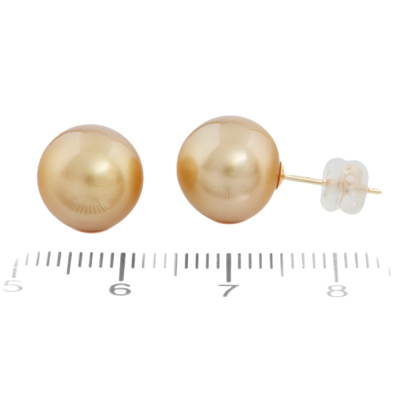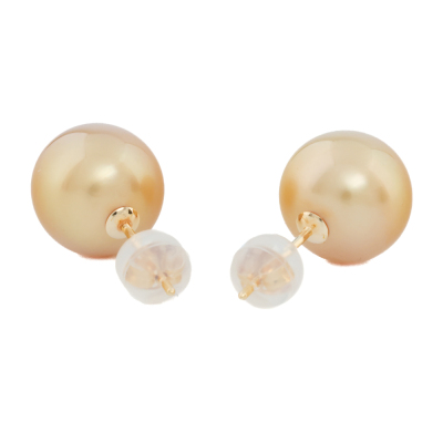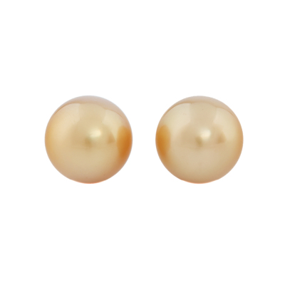 Pearl stud earrings with Golden South Sea Pearls of 10.4mm & 10.3mm. 18ct yellow gold and 18ct yellow gold with silicon backs. Weight: 3.5g. (Pre-owned)
